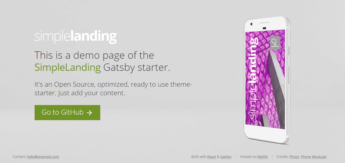 As the name says, it is a landing page starter. Demo | Github repo